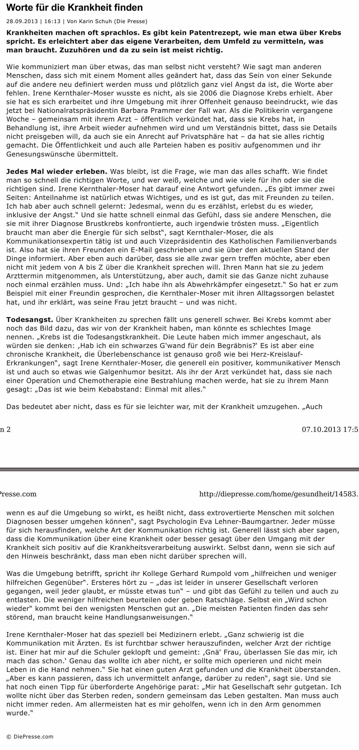 Artikel „Die Presse“, Wien 2013.09.29