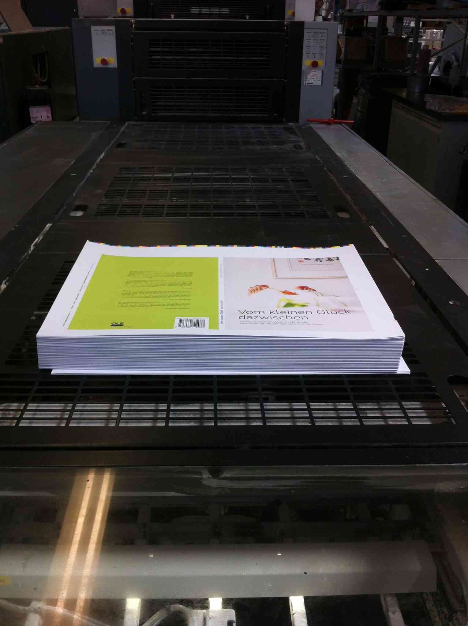 Bilder vom Druck unseres Buchs „Vom kleinen Glück dazwischen“
